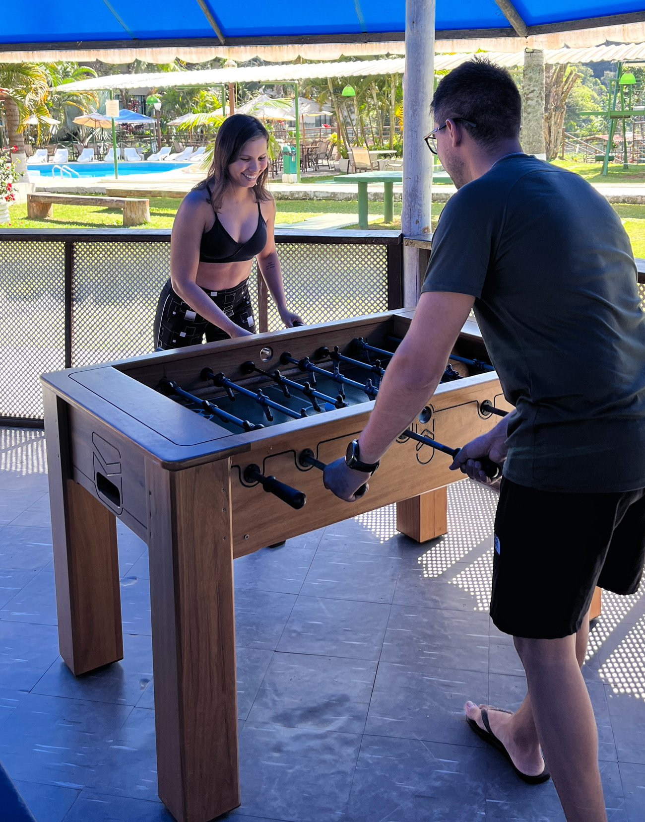 Salão com jogos de mesa, tabuleiro, cartas e muita risada.