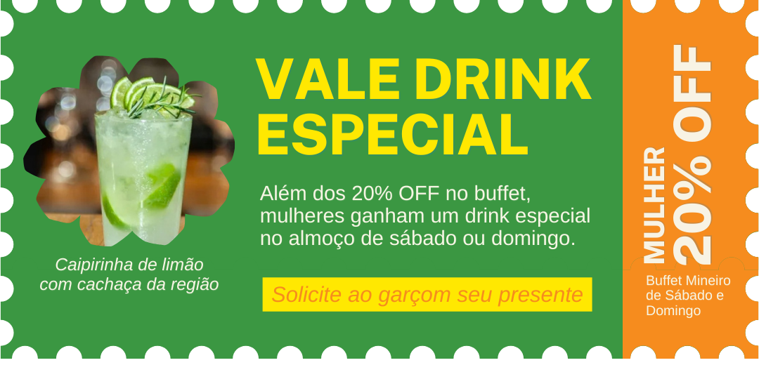 Durante todo o mês de março, na campanha Mês da Mulher Green Hill, mulheres têm 20% OFF no buffet de sábado e domingo.